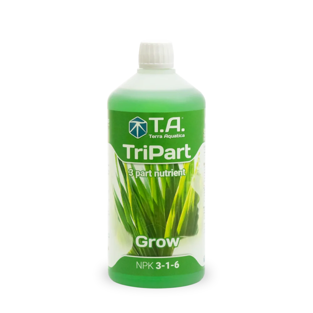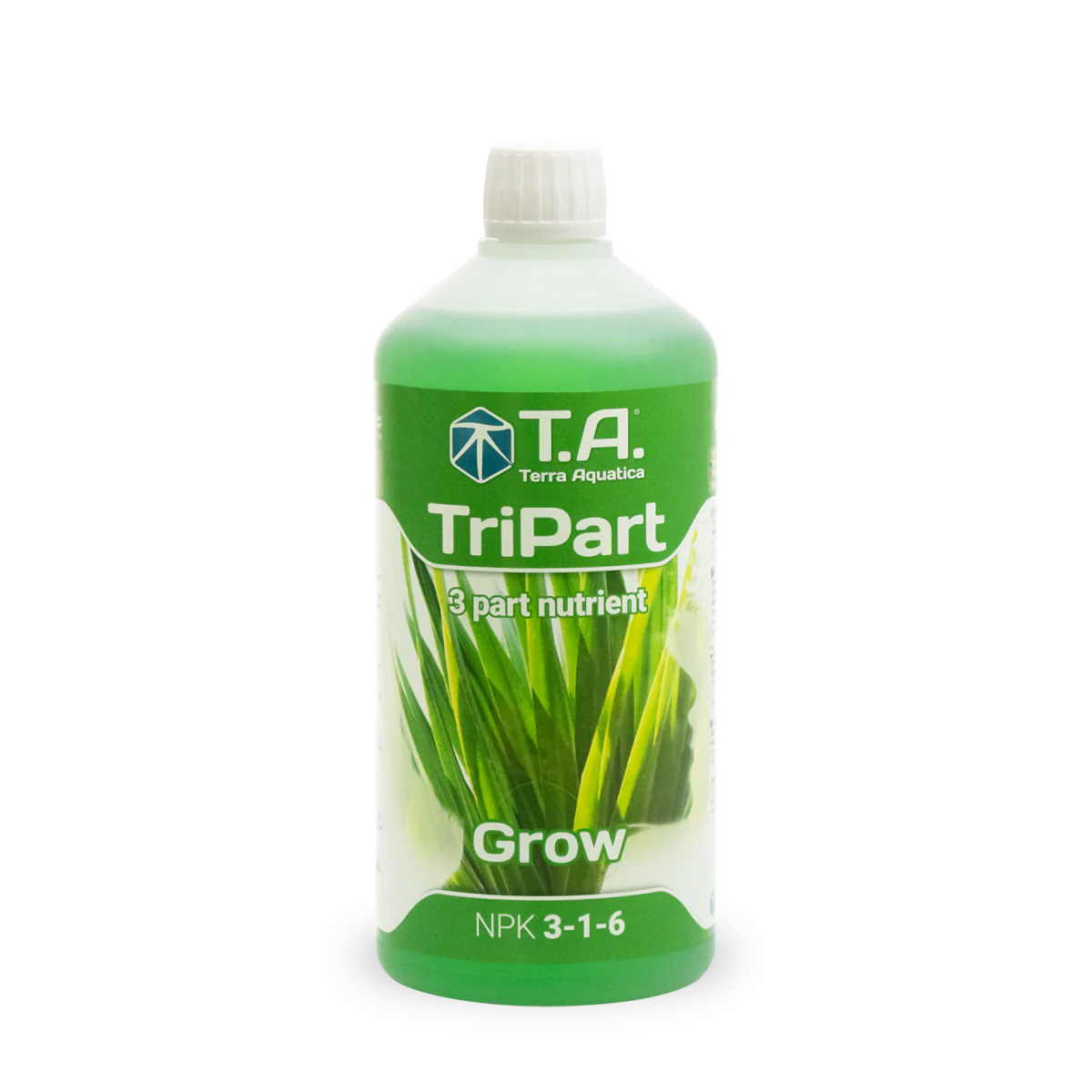 TriPart Grow by Terra Aquatica is designed to support plants during the early stages of their development. This nutrient mix, rich in nitrogen and secondary minerals, promotes balanced vegetative growth, rapid leaf formation and root strengthening. During the vegetative phase, it is recommended to use TriPart Grow at higher doses, gradually reducing them as the plants transition to flowering.